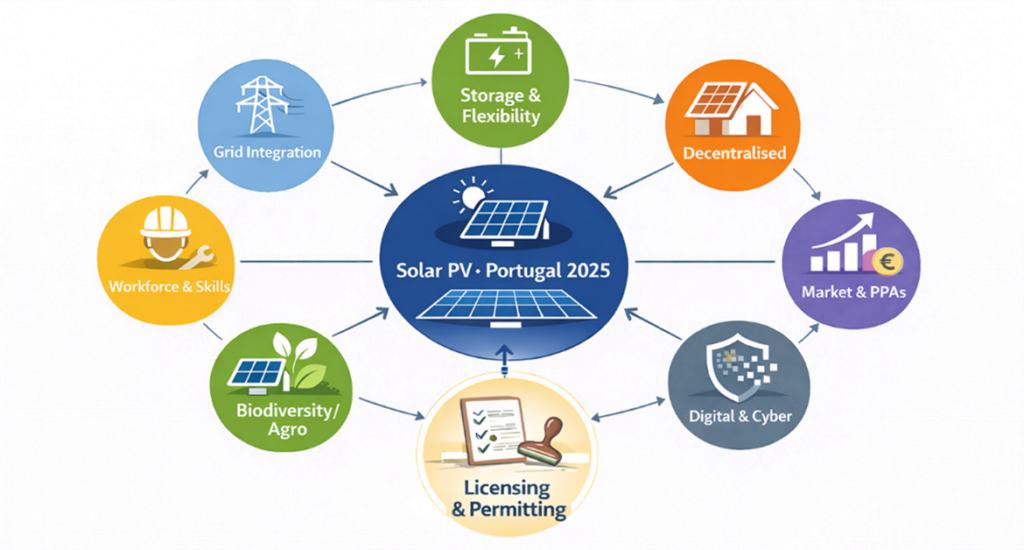 Portuguese universities and research centres remain active across the PV value chain. Institutions such as Instituto Superior Técnico (University of Lisbon) and the University of Porto conduct research on power electronics, inverter control strategies and grid integration under high shares of inverter-based generation. Participation in Horizon Europe consortia further supports work on hybrid PV-plus-storage optimisation, digital twins for predictive maintenance, flexibility services and cybersecurity for decentralised energy systems.